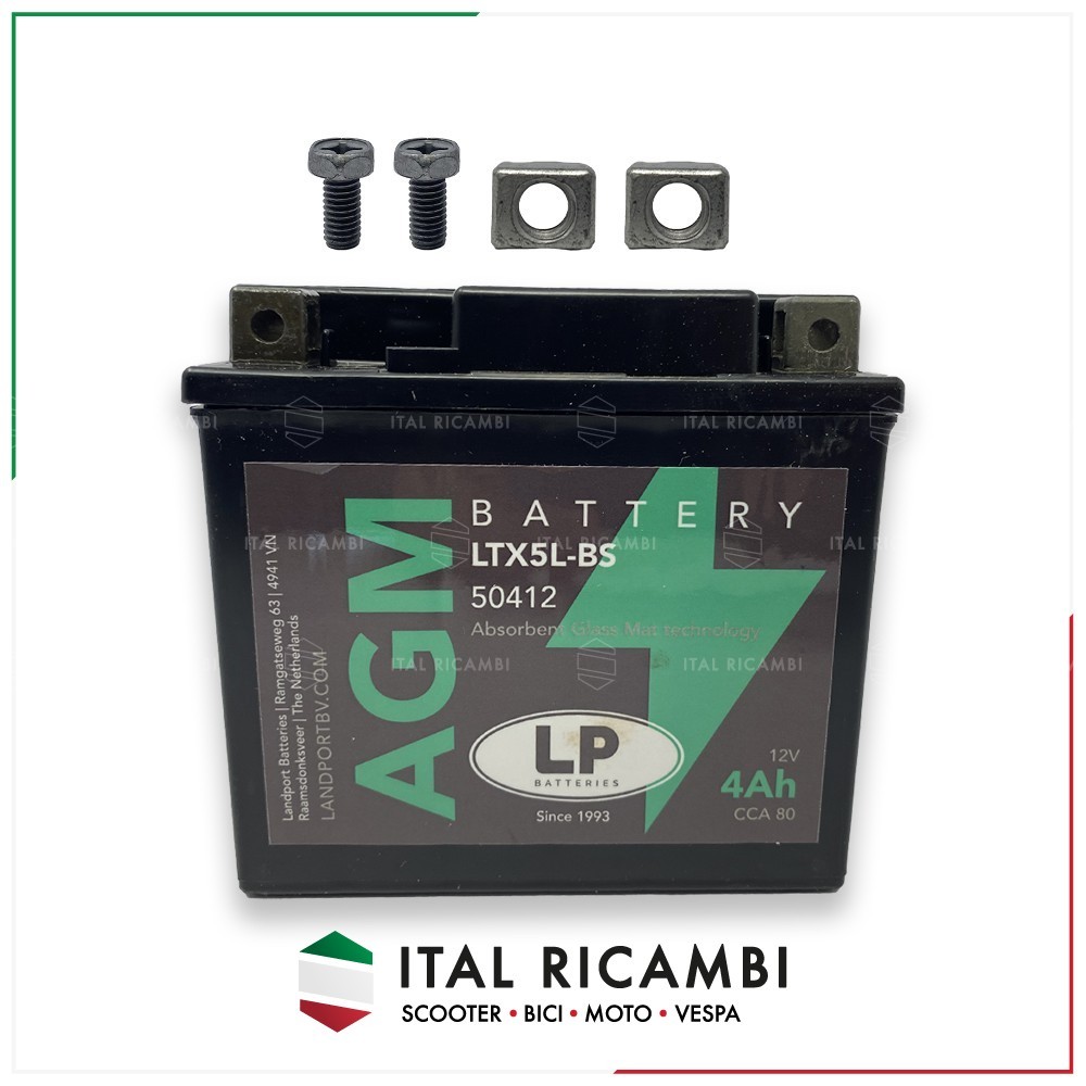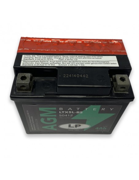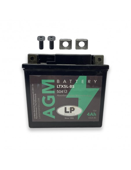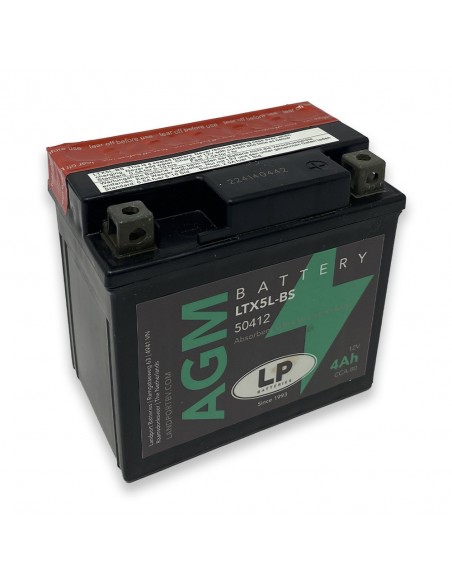 La batteria del motore LTX5L-BS, 12 volt, 4 Ah, è una batteria di avviamento con tecnologia AGM.