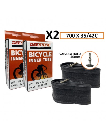 Se cerchi camere d’aria di qualità, resistenti e affidabili, la coppia di camere d’aria DEESTONE misura 700 x 35/42C con valvola Italia 40mm è la soluzione perfetta.