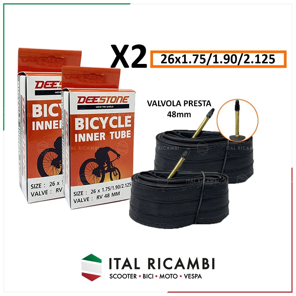 Se cerchi camere d’aria di qualità, resistenti e affidabili, la coppia di camere d’aria DEESTONE misura 26x1.75/1.90/2.125 con valvola Presta 48mm è la soluzione perfetta.