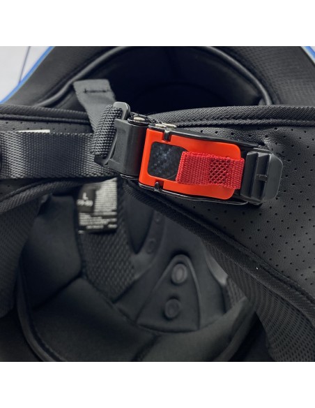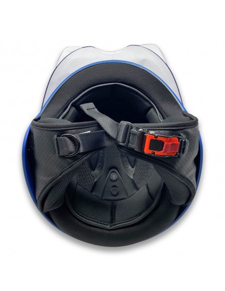 Il JFM 900 è equipaggiato con una visiera elicottero trasparente, che copre un’ampia area del volto e protegge da vento, polvere e agenti atmosferici senza compromettere la visibilità. Il sistema di chiusura è affidato a un cinturino con chiusura micrometrica, che consente una regolazione facile, veloce e precisa, anche con i guanti indossati.