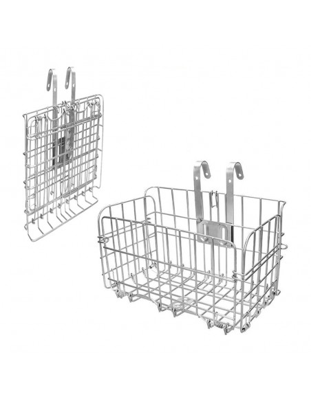 Il cestino pieghevole è realizzato in acciaio di qualità, rivestito da una finitura silver che lo rende resistente alla ruggine e agli agenti atmosferici, assicurando una lunga durata anche con un uso intensivo. La sua particolarità è la capacità di piegarsi facilmente quando non è in uso, riducendo l'ingombro e permettendo di conservarlo comodamente o di lasciare più spazio per altre attività quando parcheggi la bici.
