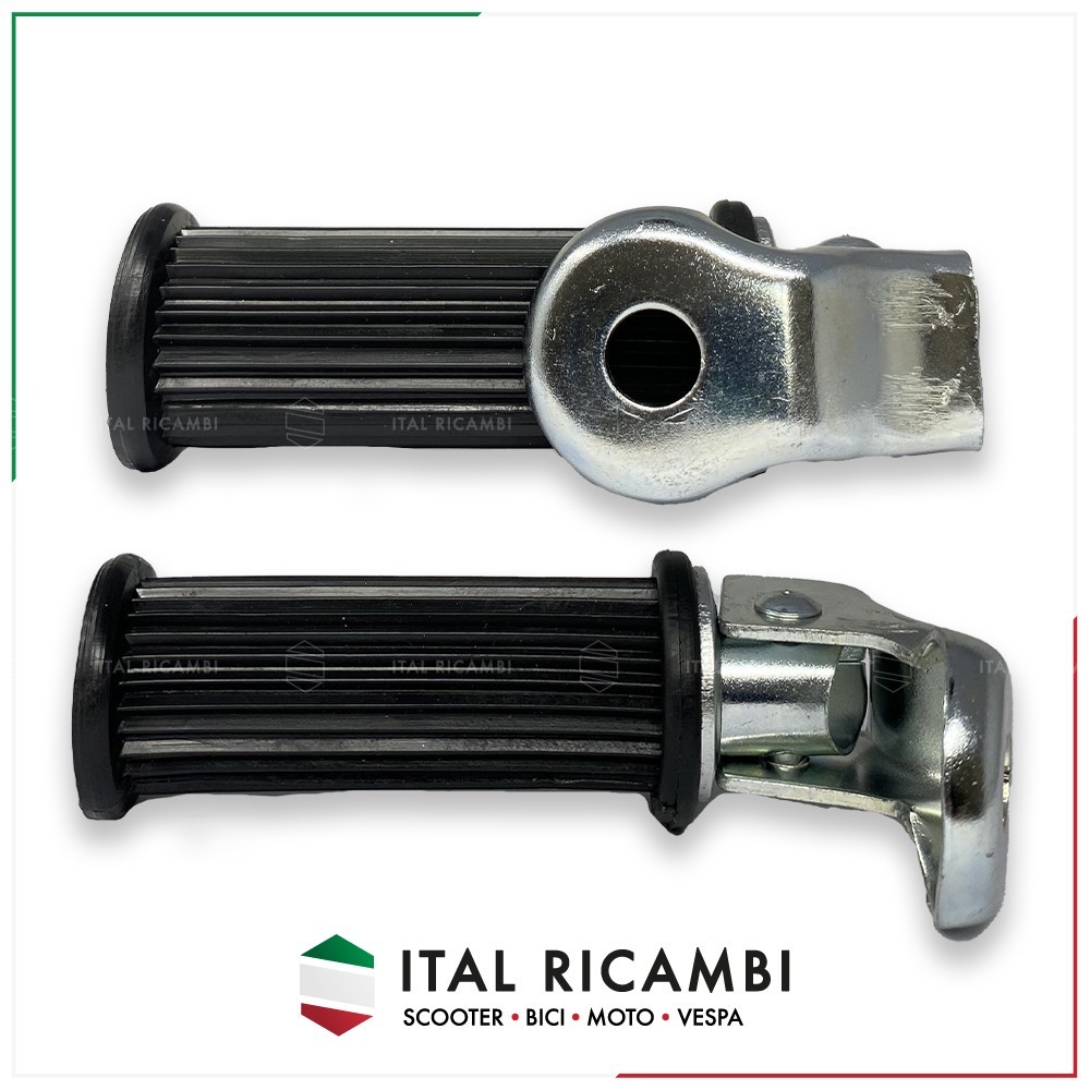 Coppia di poggiapiedi passeggero posteriori compatibili con bici Fat Bike e altre biciclette dotate di supporti per pedane. Progettati per un montaggio su tubi con diametro interno di 13 mm, questi poggiapiedi offrono stabilità e comfort per il passeggero.