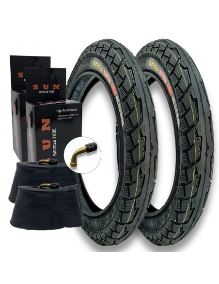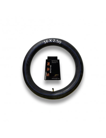 e 2 camere d'aria SUN 16 X 2.50 con VALVOLA CURVA è la soluzione ideale per rinnovare la tua bici elettrica o scooter elettrico.