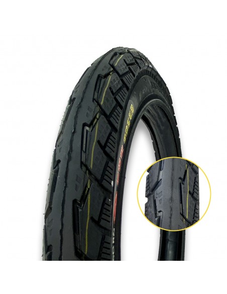 - Aderenza e sicurezza: Il battistrada scolpito fornisce un’ottima tenuta su diverse superfici, garantendo una guida sicura sia in condizioni asciutte che umide.