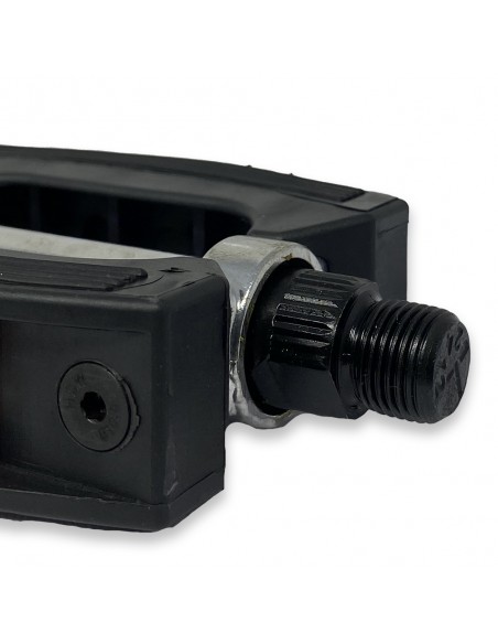 Realizzati con corpo in gomma nera resistente e asse centrale in metallo cromato, questi pedali offrono un grip sicuro e un aspetto autenticamente retrò.
