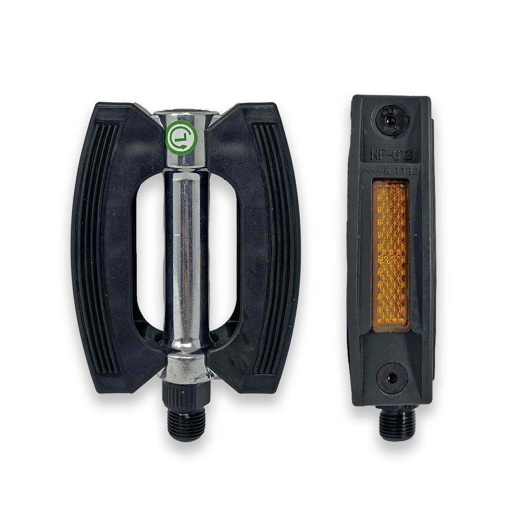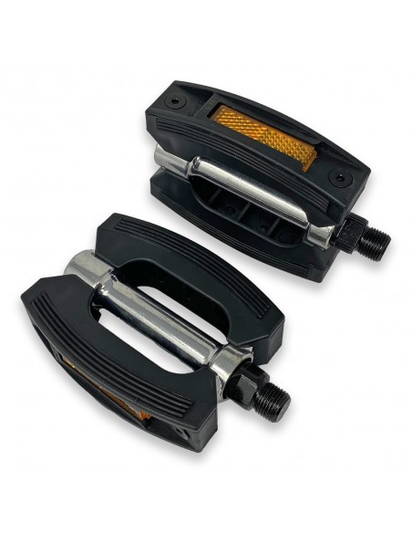 Realizzati con corpo in gomma nera resistente e asse centrale in metallo cromato, questi pedali offrono un grip sicuro e un aspetto autenticamente retrò.