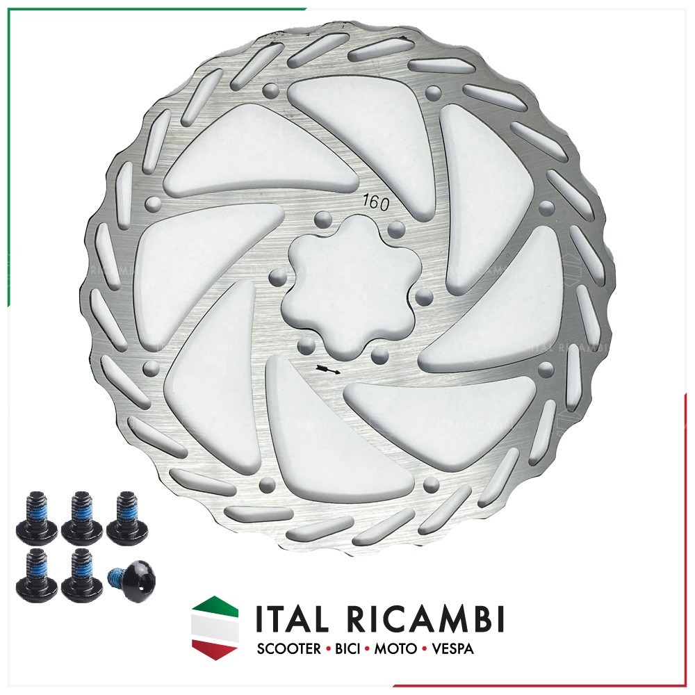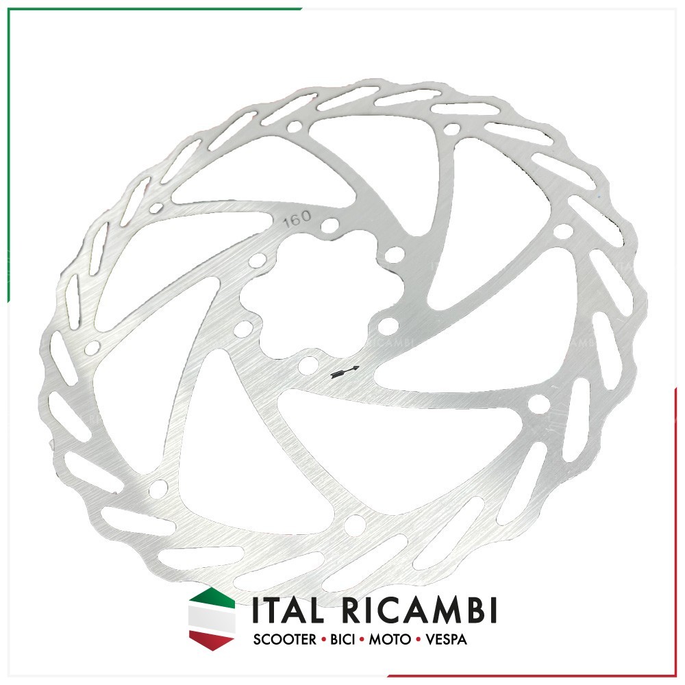 DISCO FRENO IN ACCIAIO PER BICI ULTRALEGGERO 128 GRAMMI DA 160 MM CON 6 FORI APPLICABILE ANTERIORE E POSTERIORE. IL DISCO E' UNIVERSALE PER TUTTE LE BICI CON IMPIANTO IDRAULICO O MECCANICO, ADATTO ANCHE AD E BIKE E FAT BIKE CITY BIKE. 6 VITI COMPRESE NELLA CONFEZIONE