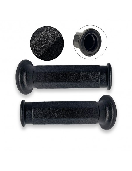 La coppia manopole ottagonali nere 114 mm Ø22/24 è adatta sia come ricambio per modelli originali che come upgrade estetico su veicoli personalizzati.