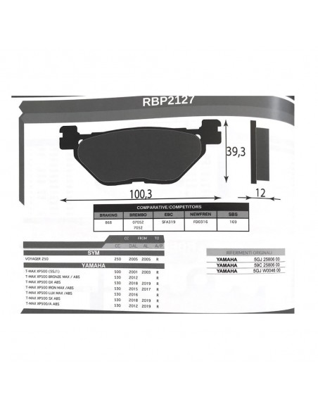 PASTIGLIE FRENO POSTERIORE TMAX 500 DAL 2001 AL 2003 TMAX 530