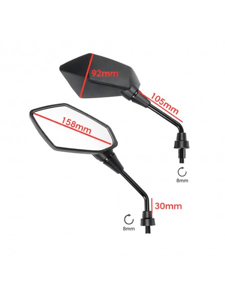 Specchietto retrovisore UNIVERSALE sinistro per scooter e moto custom, progettato per garantire massima visibilità, sicurezza e un’estetica curata. Questo modello è dotato di attacco standard M8, compatibile con la maggior parte dei manubri presenti su scooter e motocicli custom, naked e urban. L’installazione risulta semplice e veloce, senza necessità di modifiche, rendendolo ideale sia come ricambio originale sia come upgrade estetico e funzionale del proprio veicolo.