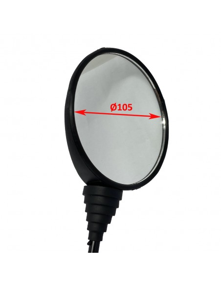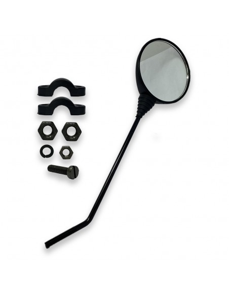 Perfetto sia come ricambio che come upgrade estetico, lo specchietto nero con vetro Ø 105 mm e asta Ø 8 mm rappresenta una soluzione completa e affidabile per mantenere il ciclomotore conforme ai requisiti di sicurezza stradale.