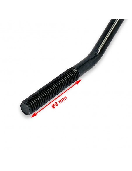 L’asta semplice Ø 8 mm si riferisce al diametro del gambo filettato, che consente un fissaggio stabile e sicuro al manubrio tramite attacco a fascetta incluso nella confezione.
